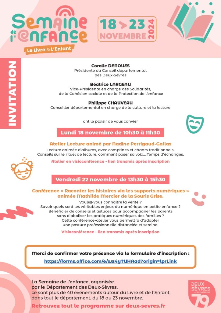 La semaine de l’enfance revient pour sa 3ème édition ! Ce sont plus de 40 évènements gratuits pour toute la famille dans tout le département : séances lectures, ateliers, rencontres d’auteurs-illustrateurs, spectacles… Retrouvez le détail de la programmation sur http://www.deux-sevres.fr/