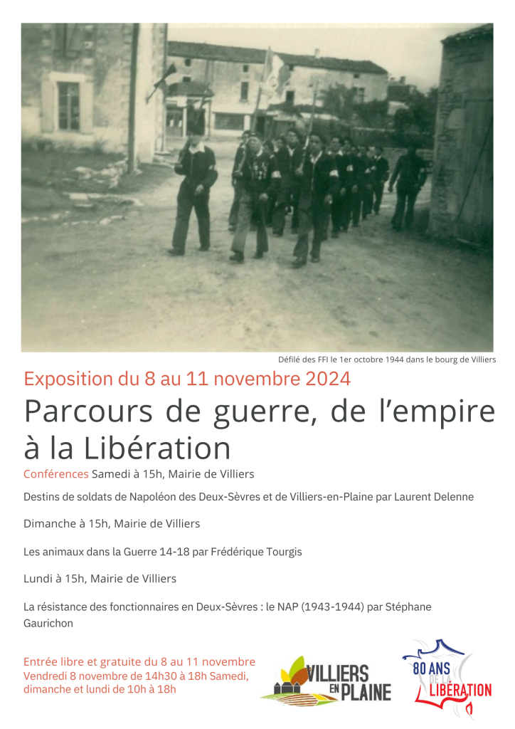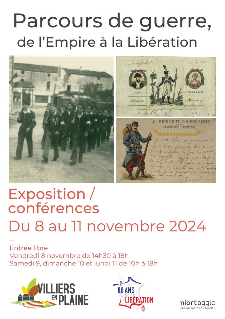 EXPOSITION – SALLE DES FETES Du 8 au 11 novembre 2024, la municipalité, en partenariat avec des collectionneurs et l’association Vivre l’Histoire en Deux-Sèvres, vous invite à découvrir l’exposition « Parcours de guerre ». A travers du matériels, des objets et des archives d’époque, vous plongerez dans l’histoire des soldats du Premier Empire jusqu’à la Libération. Des […]