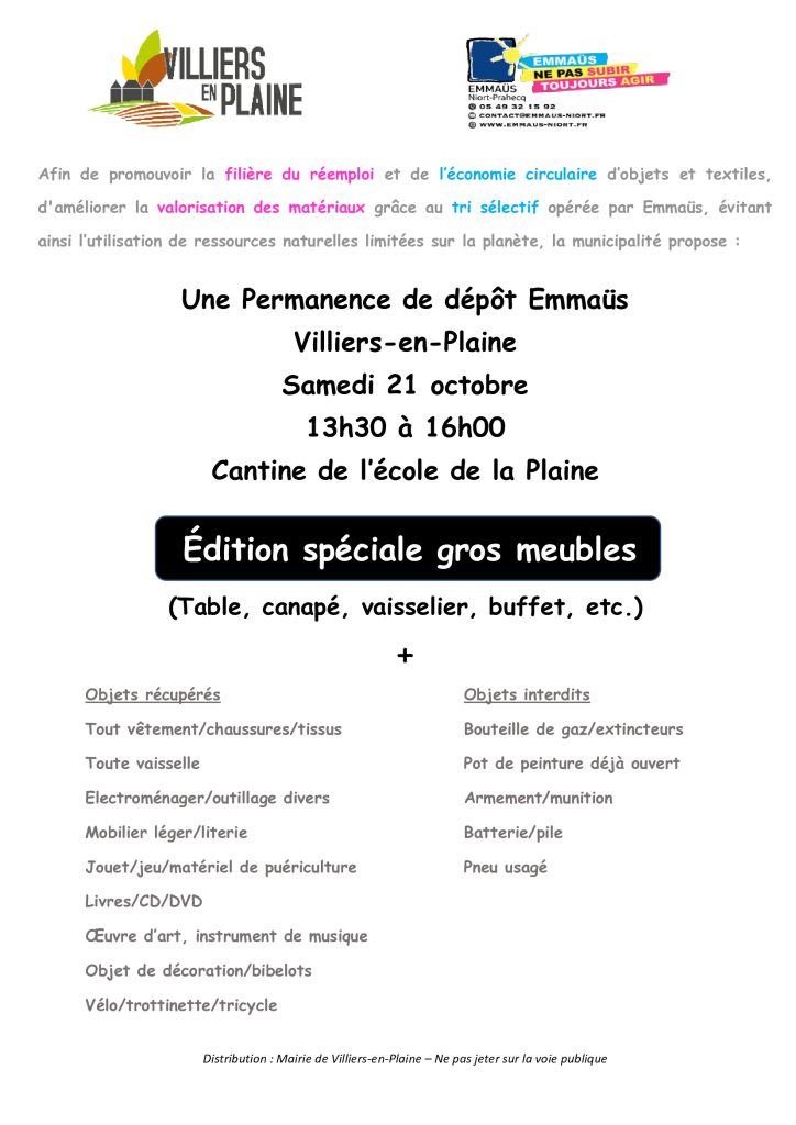 Permanence de dépôt Emmaüs : Spéciale gros meubles