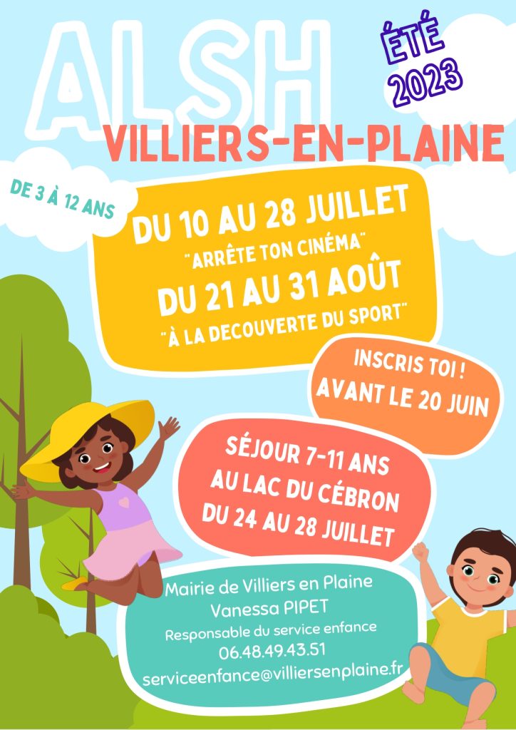 IL RESTE DES PLACES POUR LE CAMP ÉTÉ 2023 ALSH VILLIERS-EN-PLAINE !!