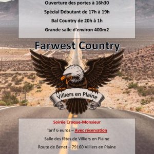 L’association Farwest Country vous donne rendez-vous le samedi 28 mars 2026 pour une grande soirée 100% country ! 🕟 Ouverture des portes 16h30🎶 Débutants 17h–19h💃🕺 Bal 20h–1h Pour reprendre des forces, profitez de la soirée Croque-Monsieur (6€ sur réservation) 🔥 Venez danser avec Farwest Country !
