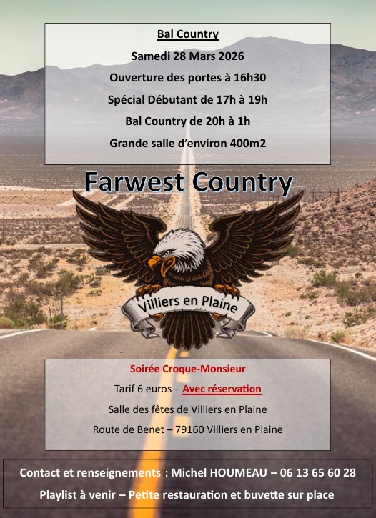 L’association Farwest Country vous donne rendez-vous le samedi 28 mars 2026 pour une grande soirée 100% country !